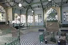 - (sometimes capitalized) A room housing a pump, especially a room or structure at a spa where mineral water is drawn from a spring and consumed, formerly often serving as a venue for polite socializing and conversation. [from 18th c.]
