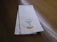 - (Christianity) The napkin used to wipe the lip of the chalice during Holy Communion.