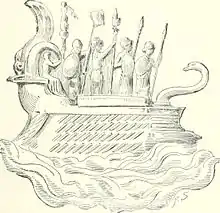 Illustration of a quadrireme from an ancient Roman coin