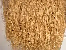 - A fibrous material used for tying plants, originating from the leaves of raffia palm trees (genus Raphia).