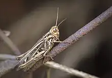 - The bow-winged grasshopper, Chorthippus biguttulus syn. Glyptobothrus biguttulus