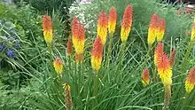 A fine stand of a typical Kniphofia of the types referred to as "red-hot pokers"