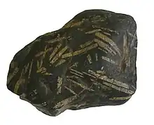 - (geology) Any natural material with a distinctive composition of minerals.
