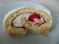 - Swiss roll, roulade (type of sponge cake rolled up into a cylinder, typically but not exclusively with jam or chocolate filling)