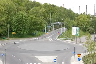- the central island of a traffic circle (roundabout, circulatory road junction)