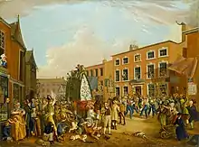 Rushbearing procession at Long Millgate, Manchester painted by Alexander Wilson, 1821
