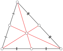 - (geometry) median (a line segment joining the vertex of triangle to the midpoint of the opposing side)