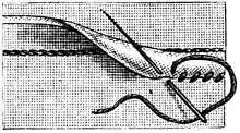 - (sewing) A folded-back and stitched piece of fabric; especially, the stitching that joins two or more pieces of fabric.