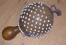 - A musical instrument consisting of a gourd surrounded by a net of beads.