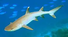 - (ichthyology) A scaleless, predatory fish of the superorder Selachimorpha, with a cartilaginous skeleton and 5 to 7 gill slits on each side of its head.