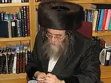 - (Judaism) A fur hat, usually worn by some married Haredi Jewish men on Shabbat and during Jewish holidays and other festive occasions.