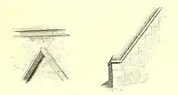- Gable Copings or Skews are of various forms of section, the most common varieties being the parallel sided, Fig. 654; the weathered, or feather-edged, Fig. 655; and the saddle-backed, Fig. 656. [...] The skews at the eaves terminate in what is termed a club-skew or skew-corbel. This admits of an infinite variety of forms, according to the style of the building, but the object is the same in all—namely, to afford a support and abutment to the skew.