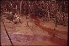 - (mining) Liquid waste from some types of mining, such as mountain top removal mining, usually very toxic and stored nearby in large dams.