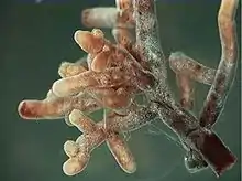 - (mycology) mycorrhiza (symbiosis between plants and fungi)