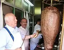 - (cooking) a (wooden or metal) skewer (small), a spit (large), a rotisserie (with motor) for roasting
