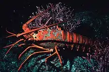 - a crustacean superficially resembling a true lobster, belonging to the family Palinuridae.