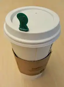 - A device used to keep heat and liquid from escaping a lidded cup. Introduced by Starbucks in Canada in 2008.