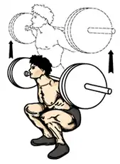 - (weightlifting) A specific exercise in weightlifting performed by bending deeply at the knees and then rising (back squat), especially with a barbell resting across the shoulders (barbell back squat).