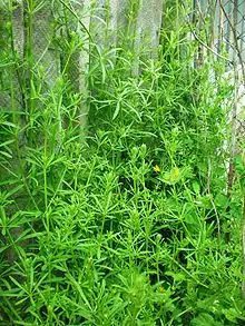 - (British) A creeping plant of species Galium aparine, covered in small hooked hairs, known for clinging to clothing.