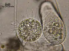 A suctorian consuming its prey.