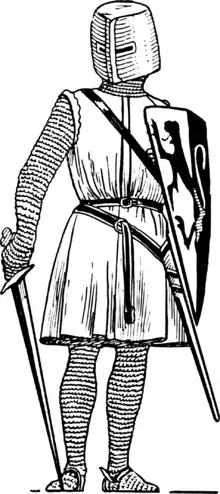- (historical) A loose garment without sleeves worn over a suit of armor, sometimes colored or embroidered with the wearer's coat of arms.
