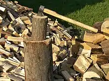- chopping stump (a large section of a tree trunk used for splitting hardwood)