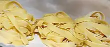 - tagliatelle (long, flat ribbons of egg pasta, originally from Emilia-Romagna, sliced from a rolled-out sheet)