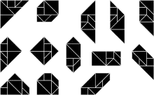 - A Chinese puzzle made of a square that is cut up into different triangular pieces which can then be reassembled to make designs.