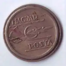 - token (a piece of stamped metal used as a substitute for money)
