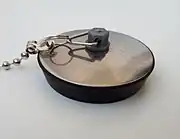 - plug, bathplug (for bath, bathtub), sink plug (for sink)