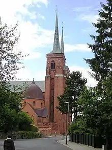 Brick building was introduced in Scandinavia with the cathedral in Roskilde, Denmark (started in the 1170s), and later led to the "Brick Gothic" (Backsteingothik) in Scandinavia and Northern Germany.