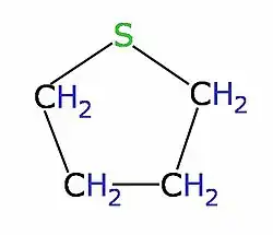 - (organic chemistry) A saturated, five-membered heterocycle containing one atom of sulfur; it is added to natural gas to provide it with a detectable smell.