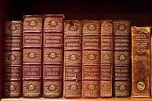 Volumes of the Encyclopædia Britannica (9th edition, 1875–1889) on a shelf