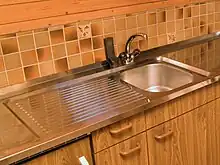 - kitchen sink table (combination of a kitchen sink and a table that allows water to drain into the sink)