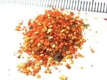 - chili peppers or chili pepper-related products from Japan, specifically the spice mixture consisting of mandarin orange peel, sesame seed, poppy seed, hemp seed, nori or aonori, and ground sansho