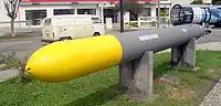 - (military) A cylindrical explosive projectile that can travel underwater and is used as a weapon. [from 1805]