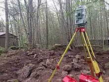 - An electronic surveying instrument, consisting of a theodolite and a rangefinder, used to evaluate an area's location, features, and topography.