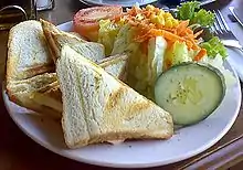 - a sandwich made from two or three slices of pancarrè, cut diagonally