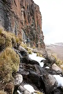 A wooden cross (trekors) marks the most remote source of the River Amazon in the Andes