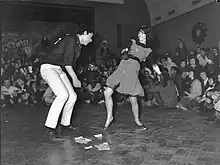 - James and Ruby danced over beside us. ‘Did you tell her?’ he asked, looking at me. I nodded. / ‘Wait a minute,’ Gloria said, as they started to dance away. ‘What’s the big idea of talking behind my back?’ / ‘Tell that twist to lay off me,’ James said, still speaking directly to me.