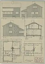 An example of standardized drawings published by the National Housing Board (Asutushallitus) in 1937.