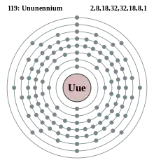 - The systematic element name for the (as yet undiscovered) chemical element with an atomic number of 119 (symbol Uue).
