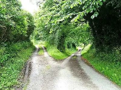 - a fork in the road (place where a road splits)