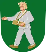 A man sowing seed from his vakka (coat-of-arms of the municipality of Toivakka).