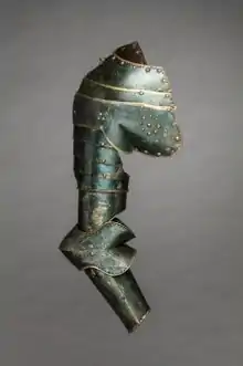 - (historical) The piece of armor designed to protect the arm from the elbow to the wrist.