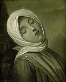 Pietro Rotrai, a. 1762, painting of a young woman in verdaille