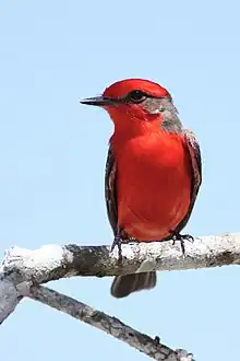 - Pyrocephalus rubinus, a small, bright red passerine bird in the Tyrannidae family.