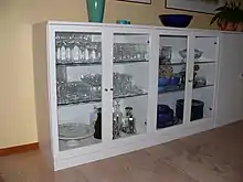 - a vitrine (glass-paneled cabinet), a display cabinet