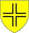Voided ordinaries can be ambiguous: the arms on the left are variously a chevron voided or two chevrons, on the right is a fess voided which, other than being charged, resembles two bars or a bar gemel.