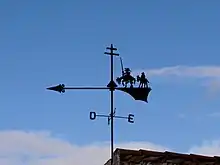 - A mechanical device rotating around one axis and attached to an elevated object such as a roof for showing the direction of the wind.